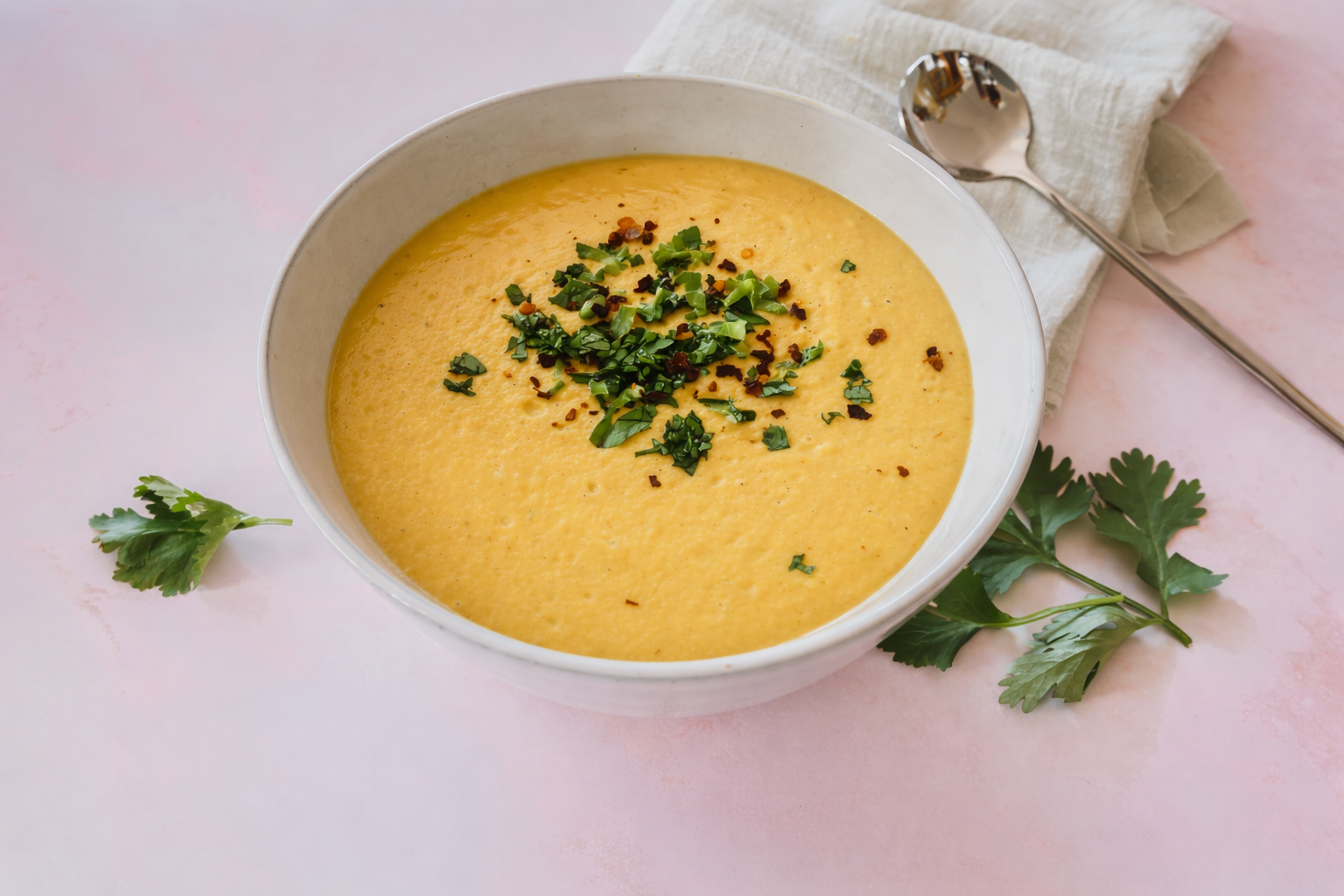 Pürierte, sämige Kartoffelsuppe mit frischen Kräutern